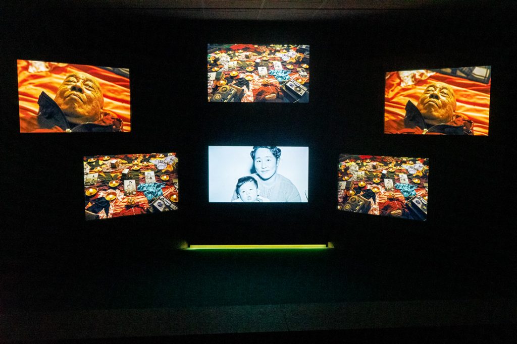 Escuchando toda la noche la lluvia, que toma su título de un poema del siglo XI del escritor chino Su Dongpo, fue una obra originalmente encargada por el British Council para el Pabellón Británico en la 60 Exposición Internacional de Arte-La Biennale di Venezia de 2024. Para su estreno en Madrid, se ha han escogido cinco de los ocho Cantos originales y se han adaptado a la morfología del museo, acompañando las instalaciones inmersivas de cine multicanal y sonido con obras de las colecciones Thyssen-Bornemisza, entre ellas piezas de Joan Miró, Lucio Fontana o Romare Bearden, con las que se amplía el diálogo creado entre el vídeo y el paisaje sonoro.