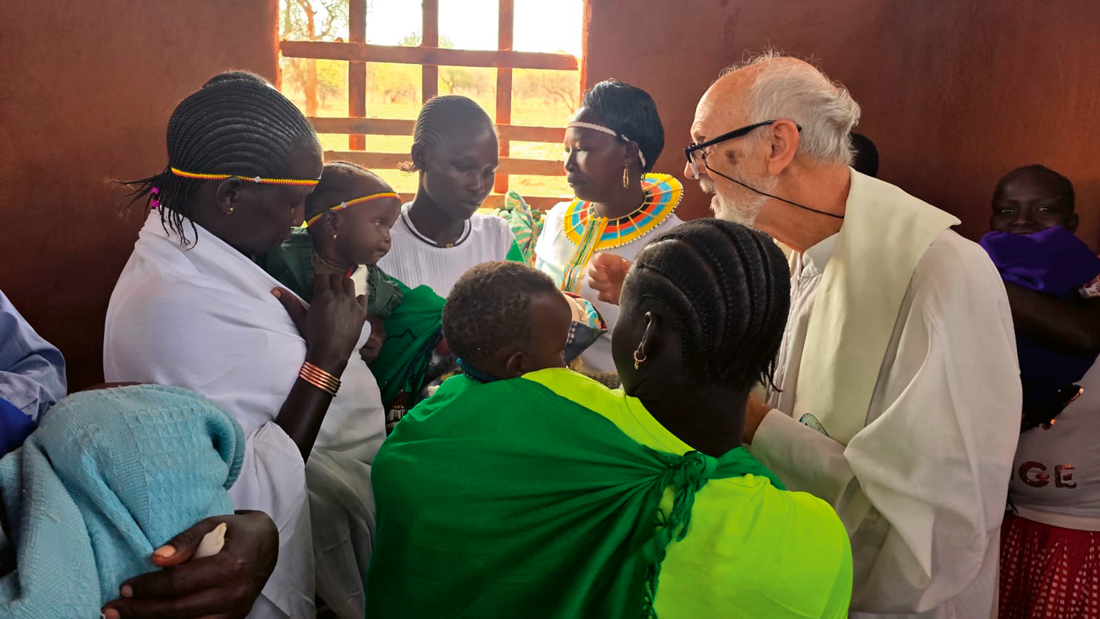 Somos cuatro combonianos en comunidad: un sudanés, un keniano, un mexicano y el palentino que escribe. Junto a nosotros hay una comunidad de cinco combonianas que atienden el dispensario y ayudan en tareas pastorales. Además, hace unos meses se abrió en Chelopoy, una de nuestras capillas, una comunidad con tres laicas misioneras combonianas. Somos personas consagradas al Señor y misioneros al servicio de la Iglesia. Cada día se inicia temprano con la oración comunitaria y la eucaristía.