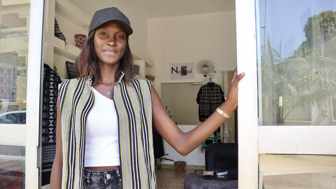 Una vez terminados los estudios en la Universidad Assane Seck de Ziguinchor (Senegal), Satitia Gomis tenía que decidir cómo ganarse la vida. Optó por unir dos de sus pasiones: el emprendimiento y la moda. Y abrió una boutique-taller donde diseña sus modelos, los expone al público y forma a jóvenes en el manejo de las telas manjak.