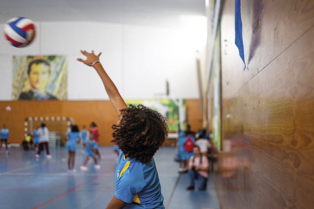El sistema educativo caboverdiano se sustenta principalmente en los centros públicos, aunque también destacan las iniciativas privadas y las eclesiales. Si el Jardín de Infancia Espíritu Santo de Assomada se ocupa de la educación ­preescolar, en Mindelo destaca la Escuela Salesiana de Artes y Oficios (ver MN 712, pp. 82-85). Con cerca de 80 años de historia, en el último curso lectivo tuvieron en sus aulas a 1 274 alumnos desde la enseñanza básica hasta Bachillerato. Eso supone que el alumnado revoluciona pasillos, patios y aulas a cualquier hora del día, en todo momento, desde las siete y media de la mañana hasta las siete de la tarde.