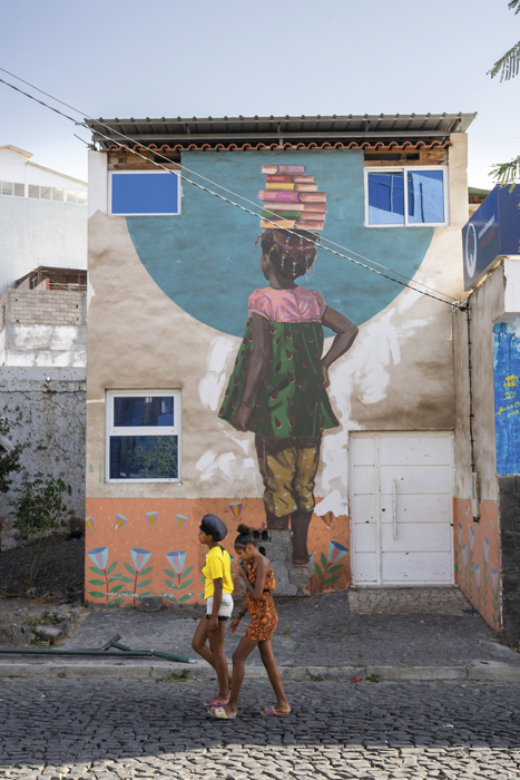 La rua d’Arte está en el barrio de Terra Branca. En Praia, la capital de Cabo Verde. En sus paredes se multiplican los murales. Una apuesta por dignificar y revalorizar la zona la ha convertido en una atracción para locales y foráneos. En un esquinazo te encuentras un retrato del cantante local Ildo Lobo. Avanzas y llegas a un niño que bebe agua de un grifo a manos llenas. Y a Codé di Dona, emblemático representante nacional del funaná, uno de los legados musicales del país –«En su género está a la altura de Cesária Évora», nos dicen–. La referencia es esta calle, pero hay más. Enfrente, dos alas de ángel emergen en un muro al lado de sendas sentencias en criollo: Bu ka ata perdoi nada si tudu algen gana –‘Tú no pierdes nada si todos ganan’– y Bu ka ta ganha nada si tudu algen perdi –‘Tú no ganas nada si todos pierden’–.